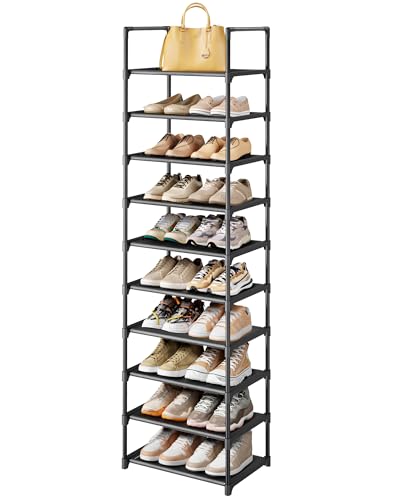 Kitsure Shoe Rack - 10-Tier Shoe Organizer with Detachable Fabric Shelves & Metal Frame, Tall Shoe Rack for Closet, Entryway, Living Room, 16.9" Wide - 10 Tier, Black
